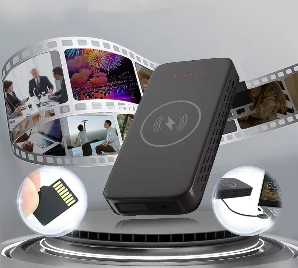 מצלמה במטען נייד עם טעינה אלחוטית וחוטית